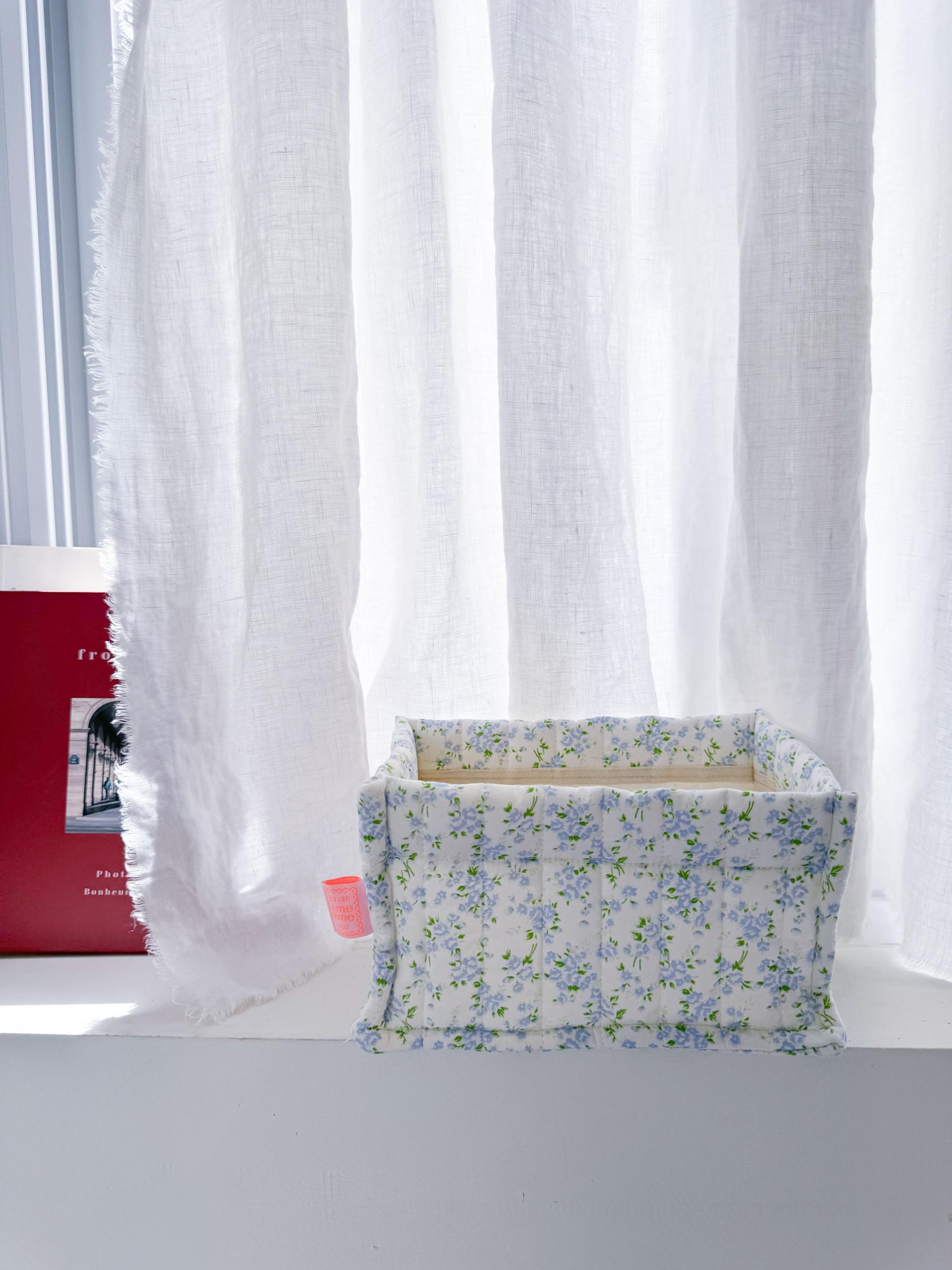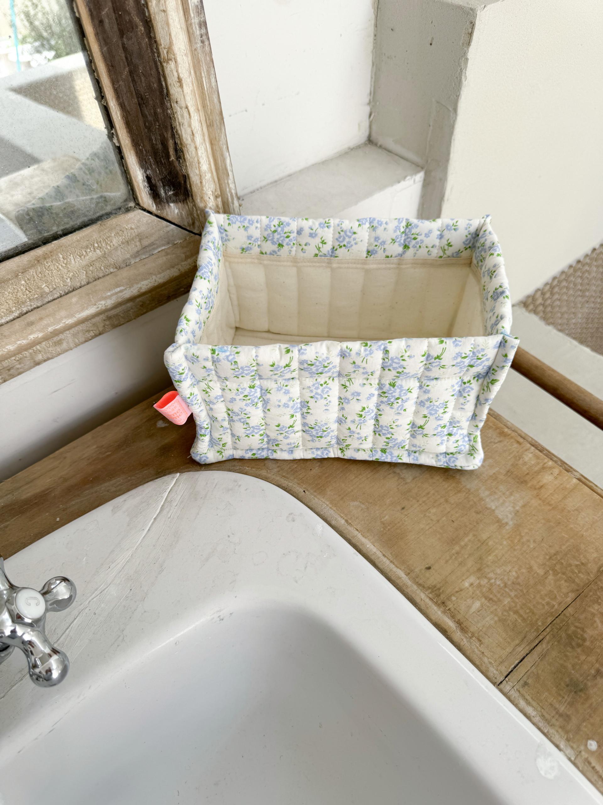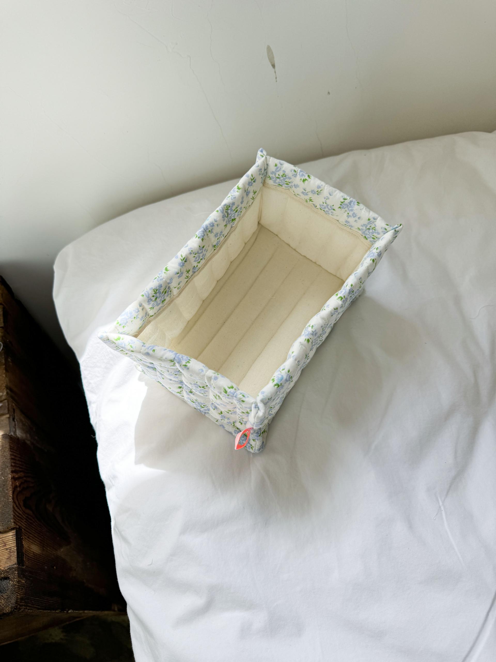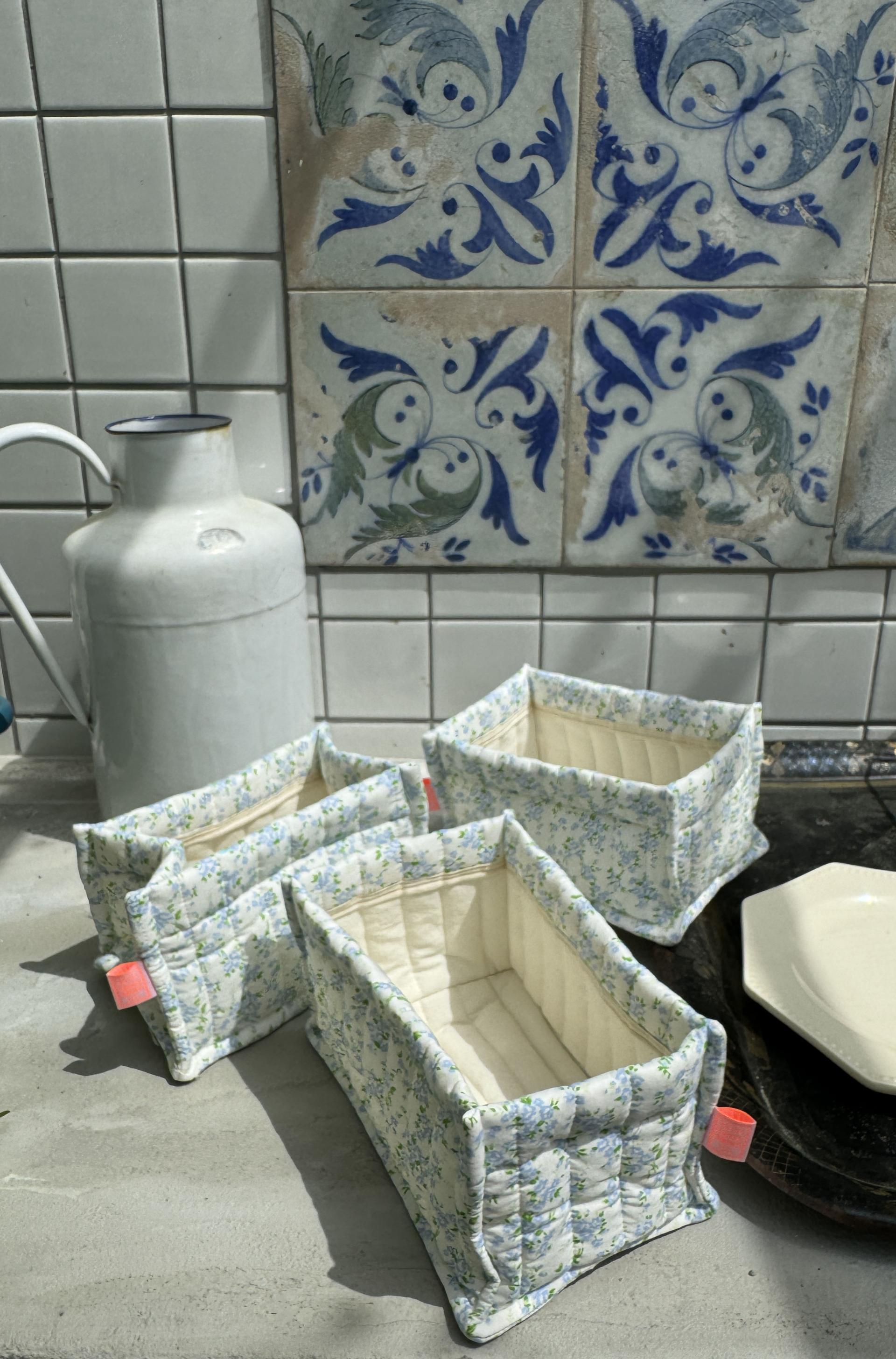 Size: 가로 20cm 높이 12cm 폭 12cm 의 직사각형 누빔 바구니 입니다.