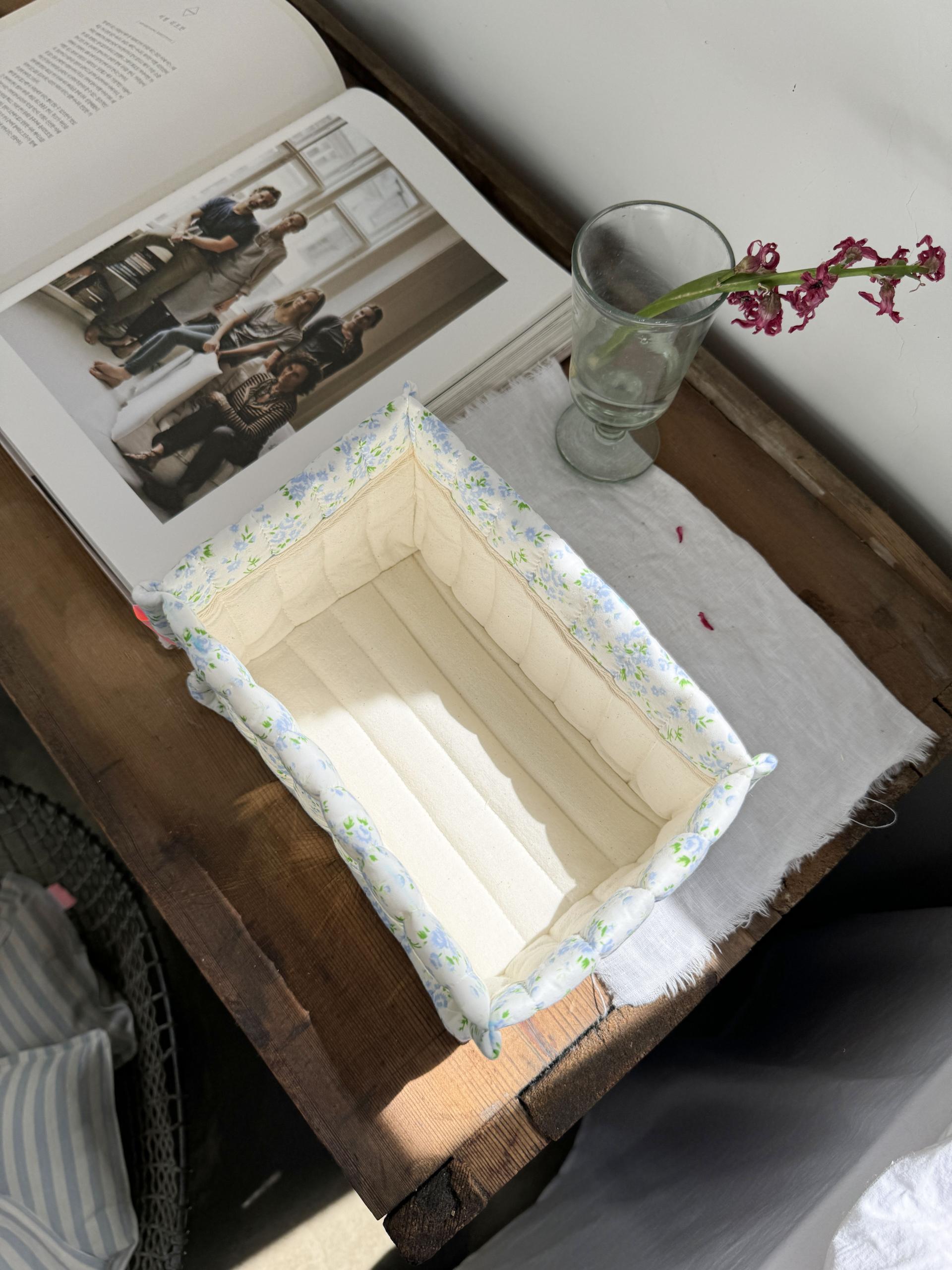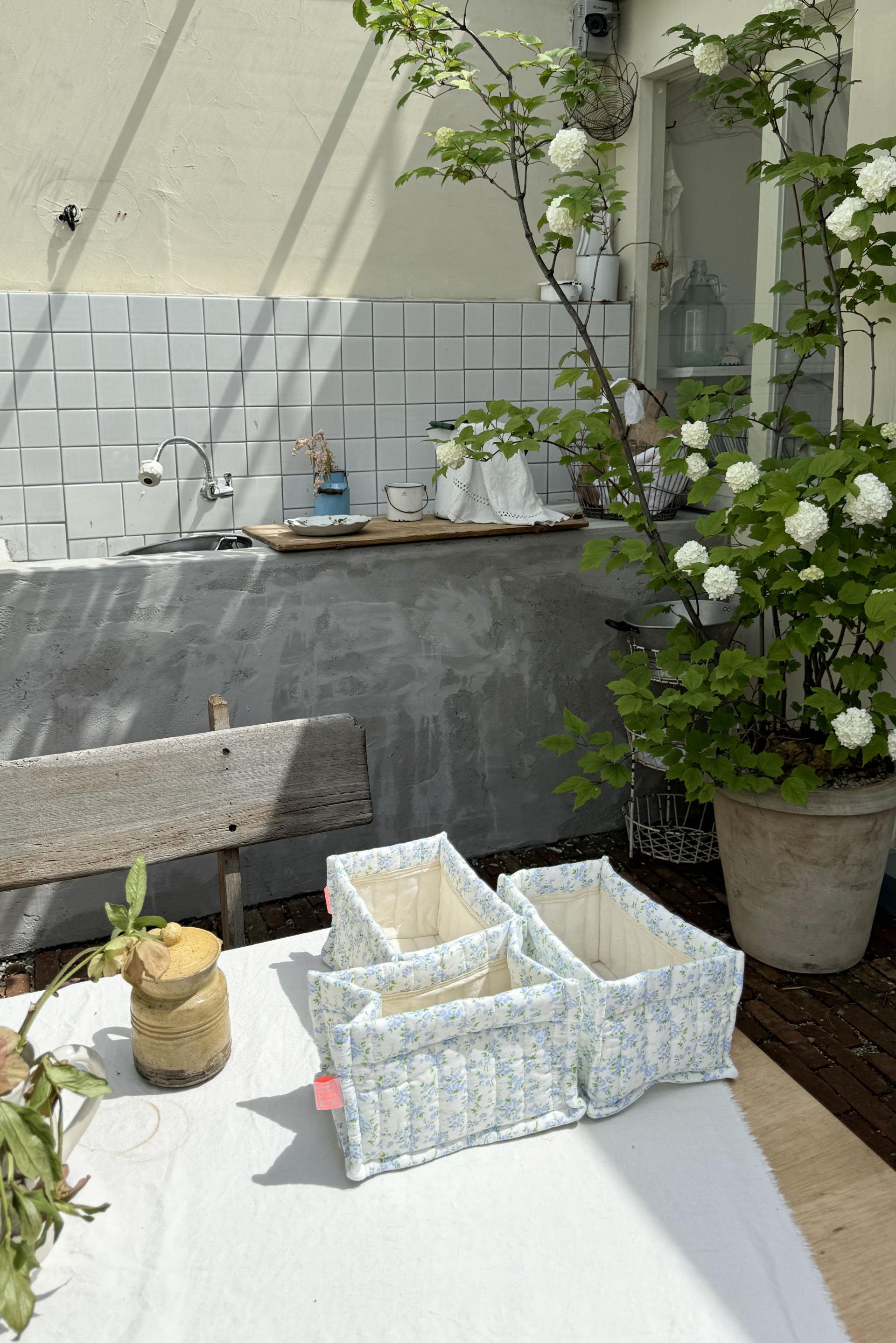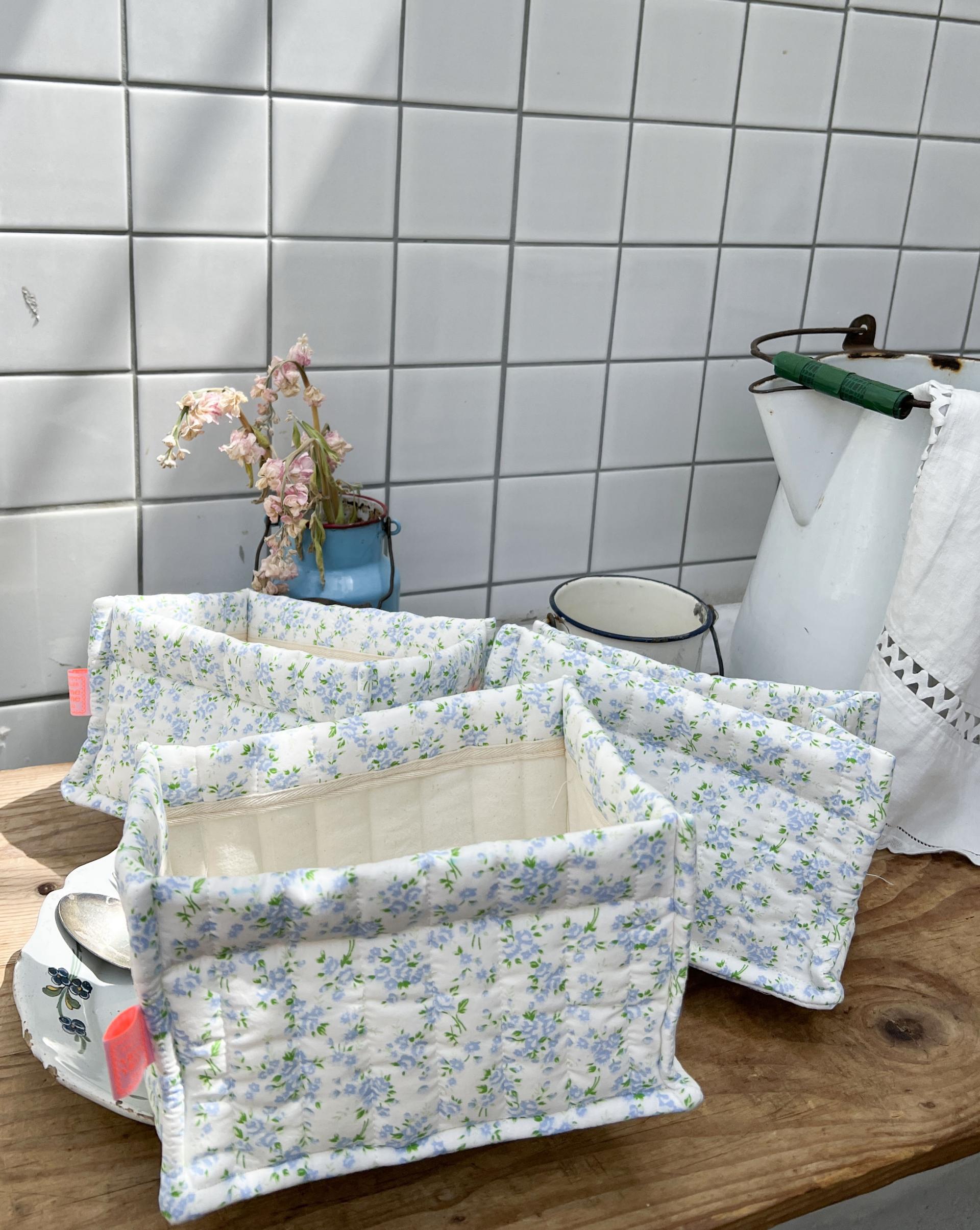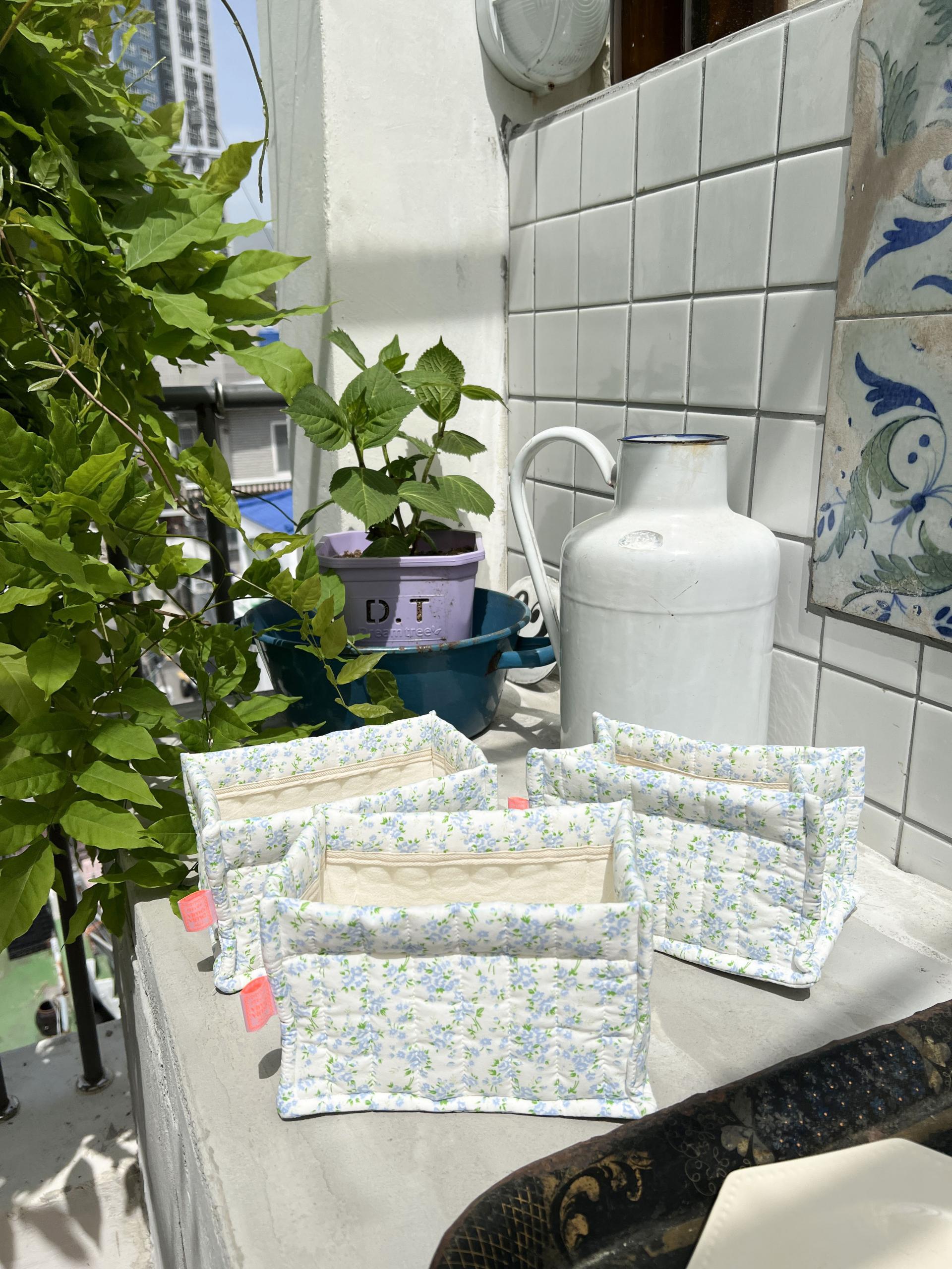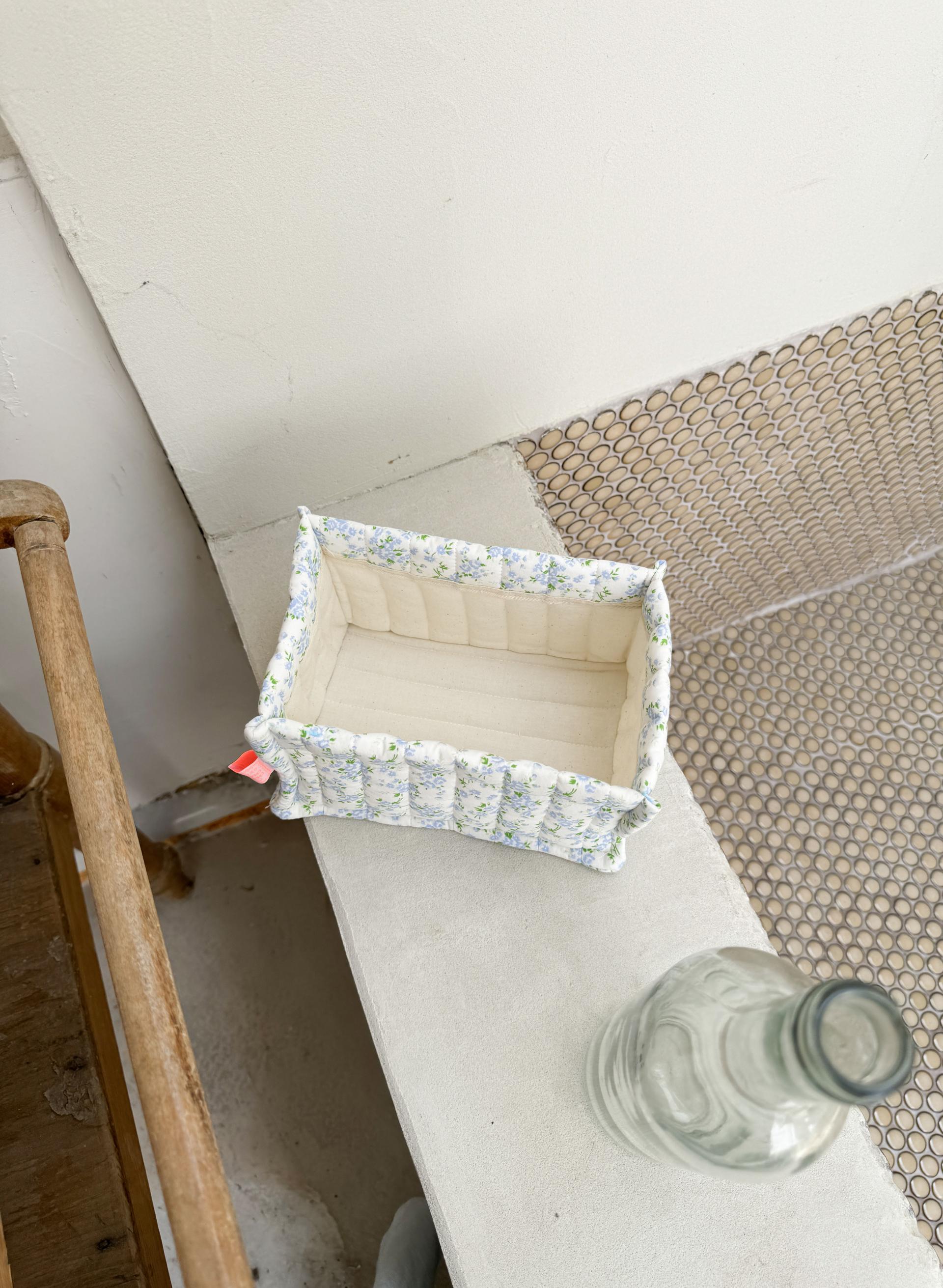 Size: 가로 20cm 높이 12cm 폭 12cm 의 직사각형 누빔 바구니 입니다.