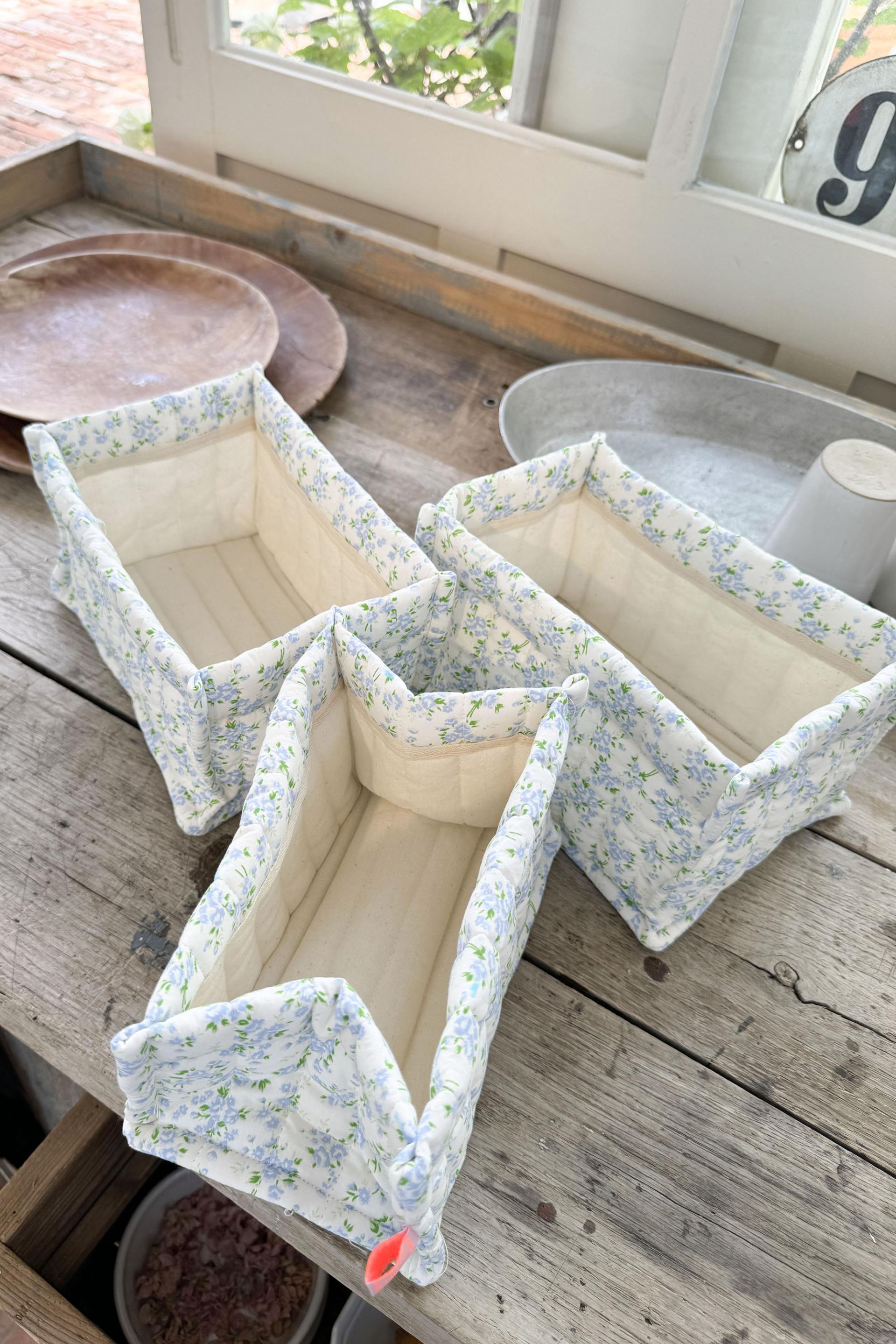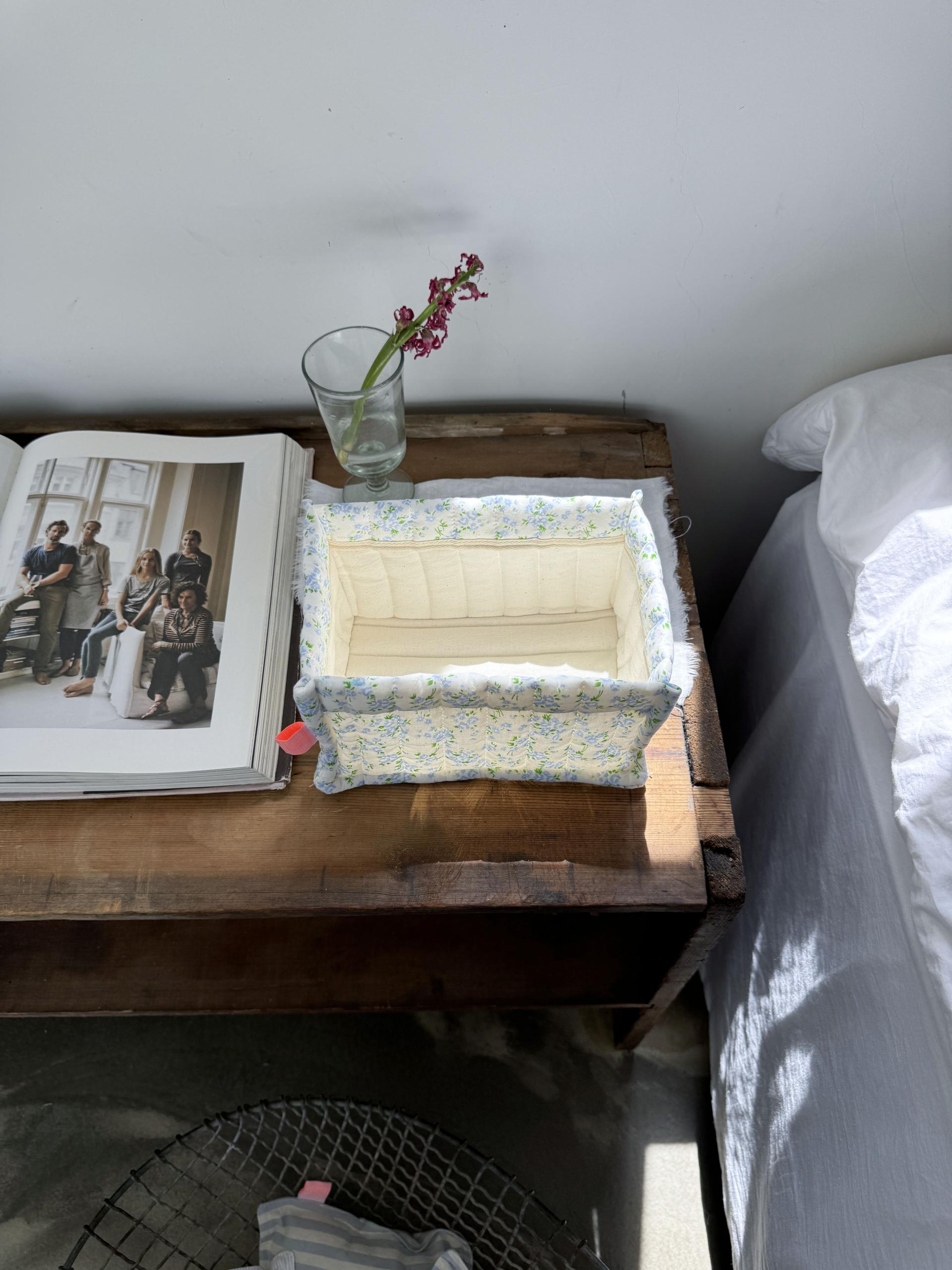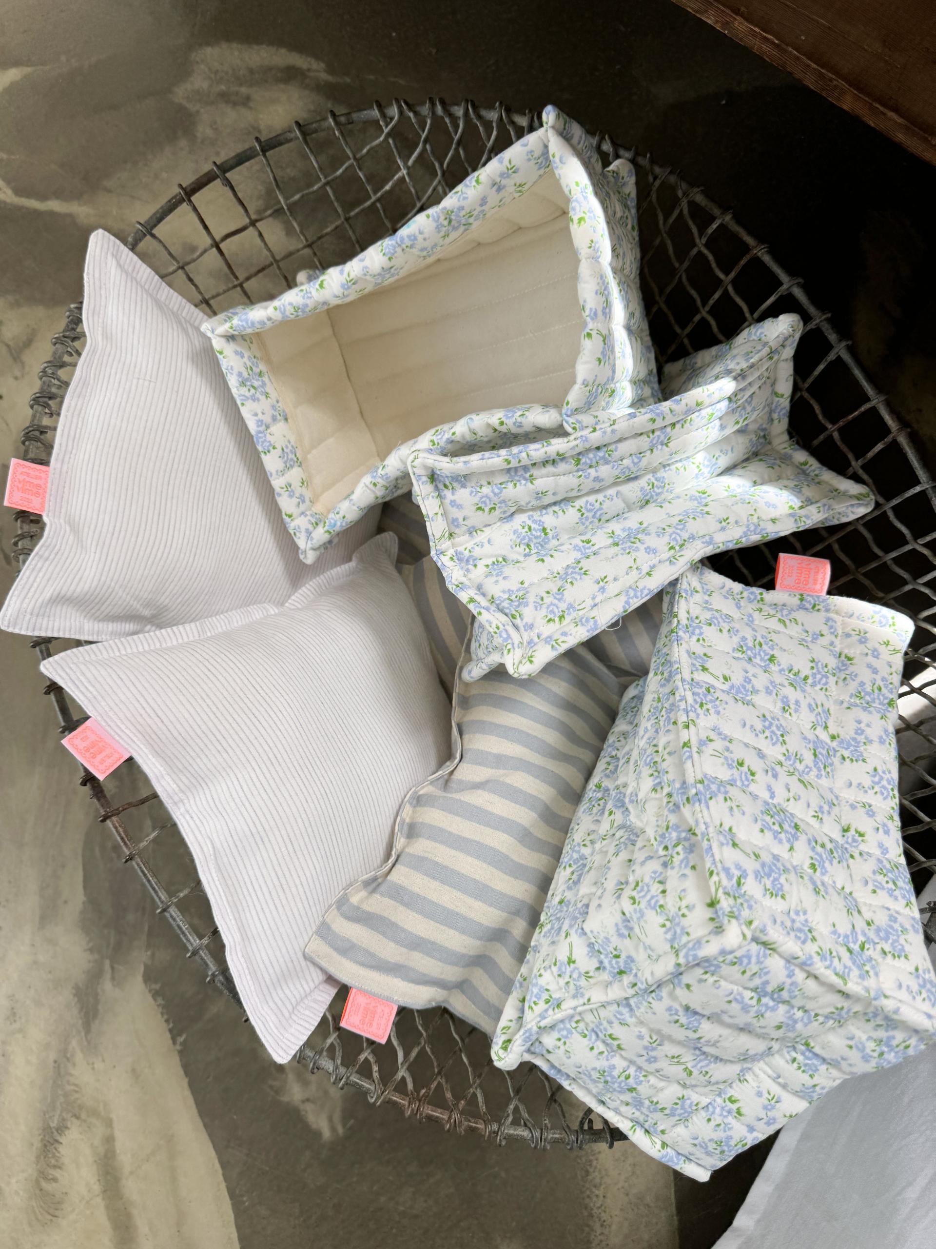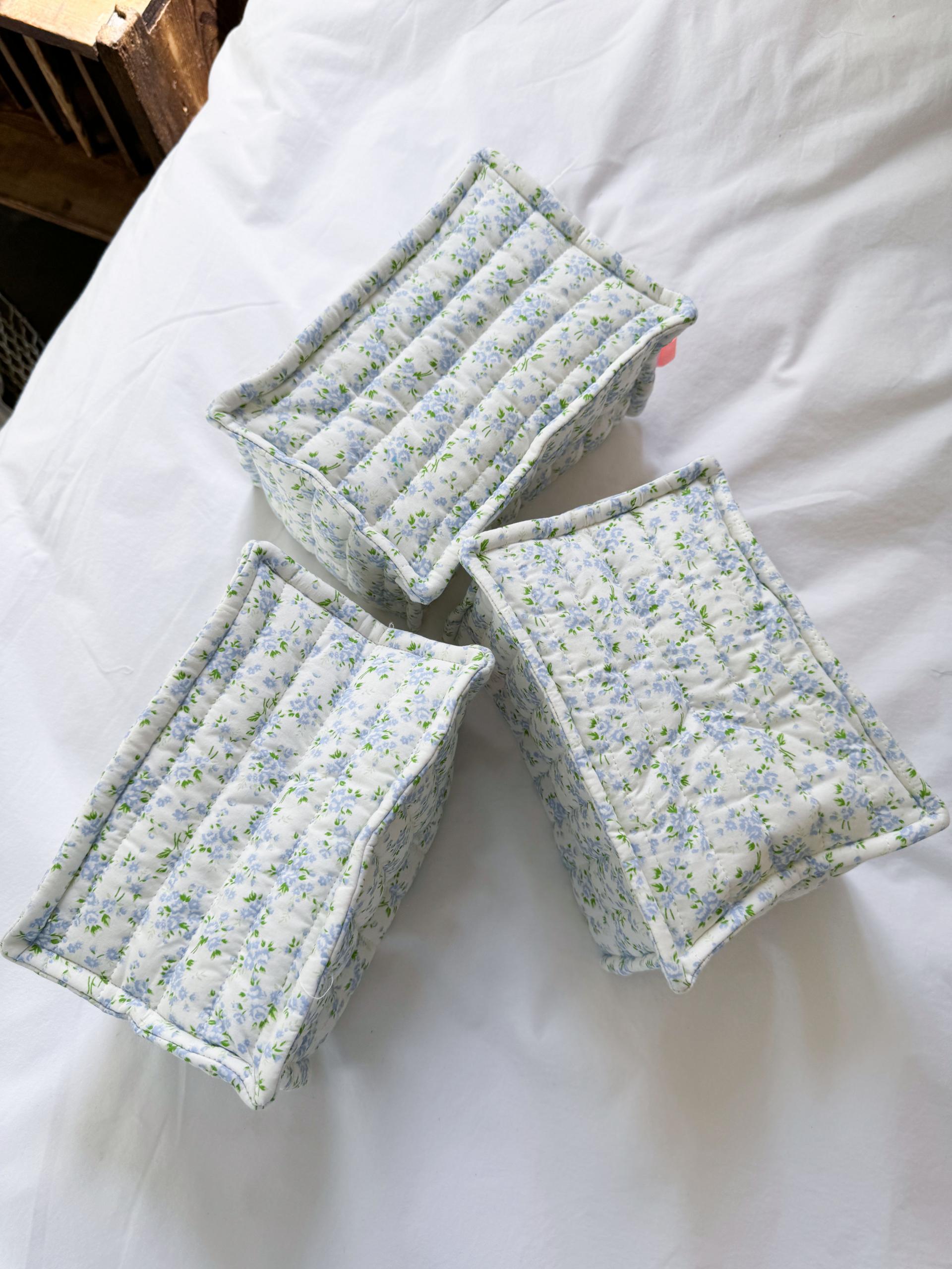 Size: 가로 20cm 높이 12cm 폭 12cm 의 직사각형 누빔 바구니 입니다.
