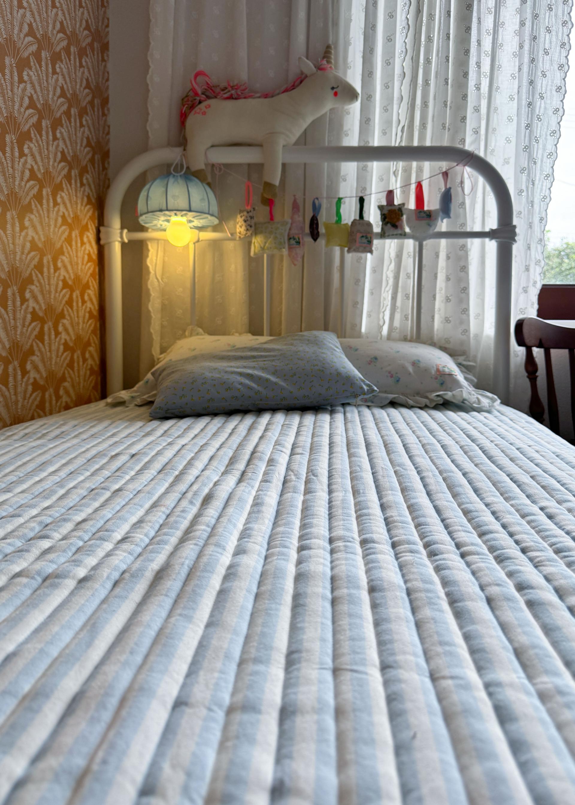 색감이 요렇게 고운 하늘색 스트라이프 원단은