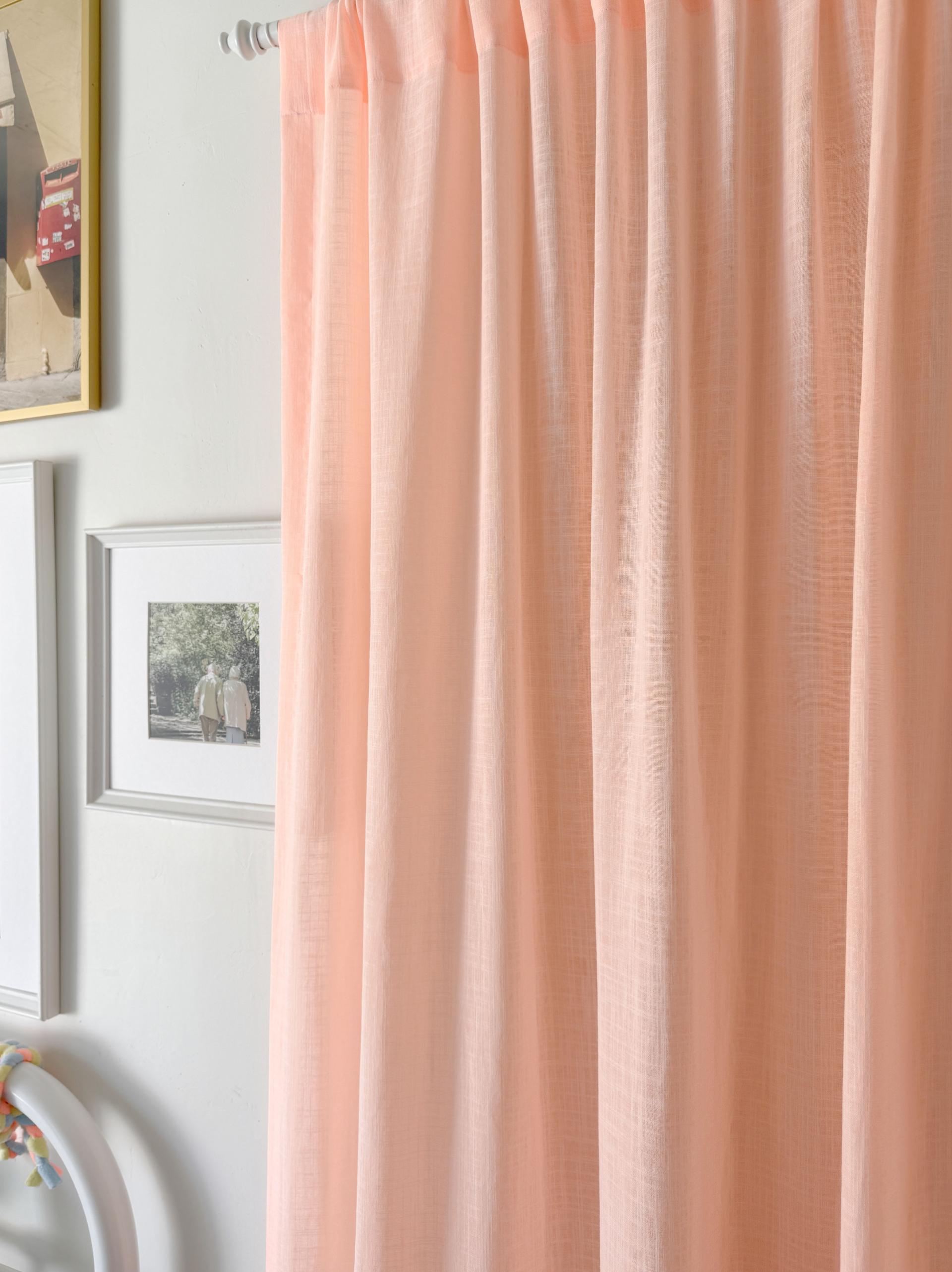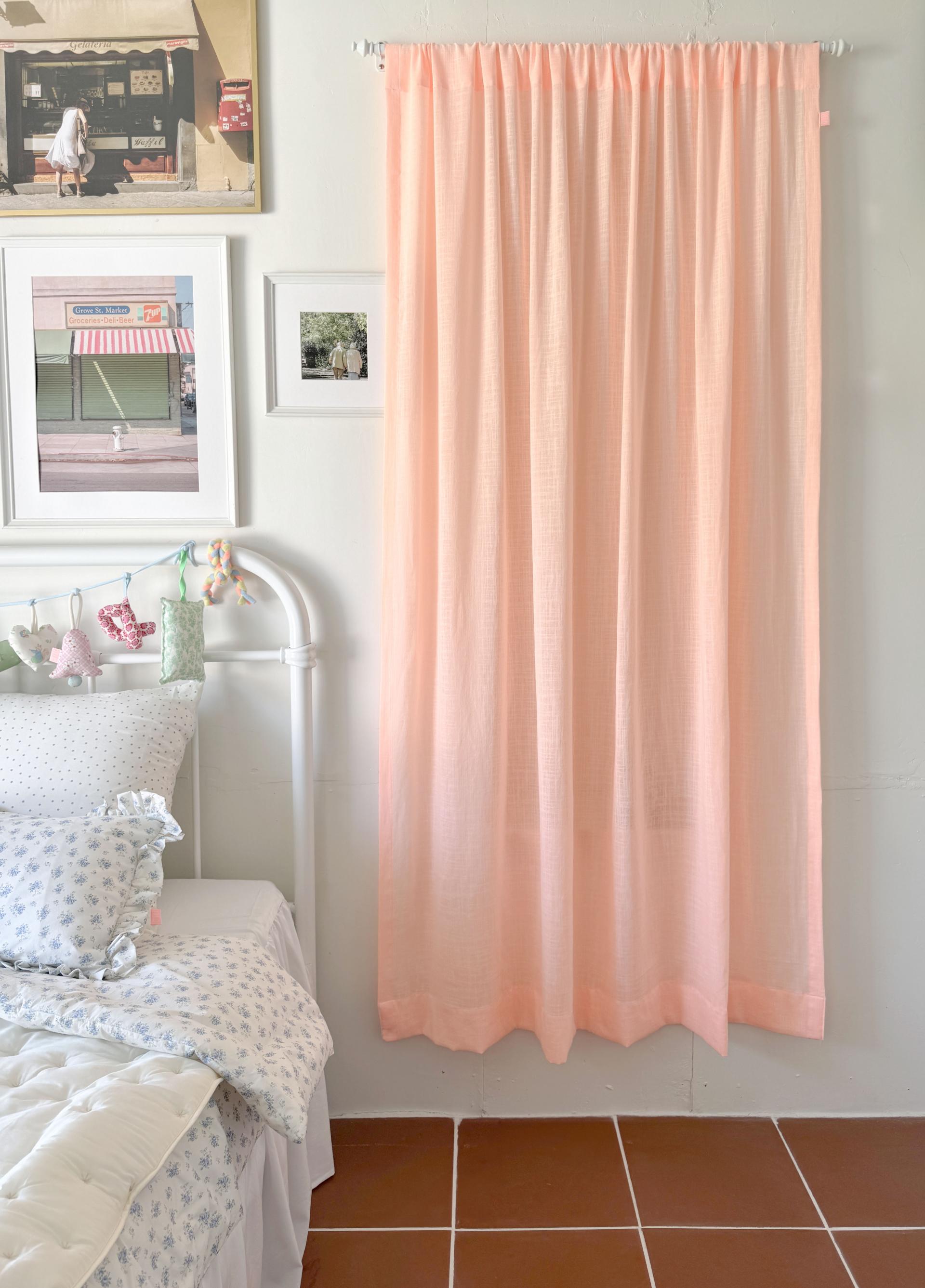 햇살을 머금은 듯한 형광빛 살구색 커튼으로,