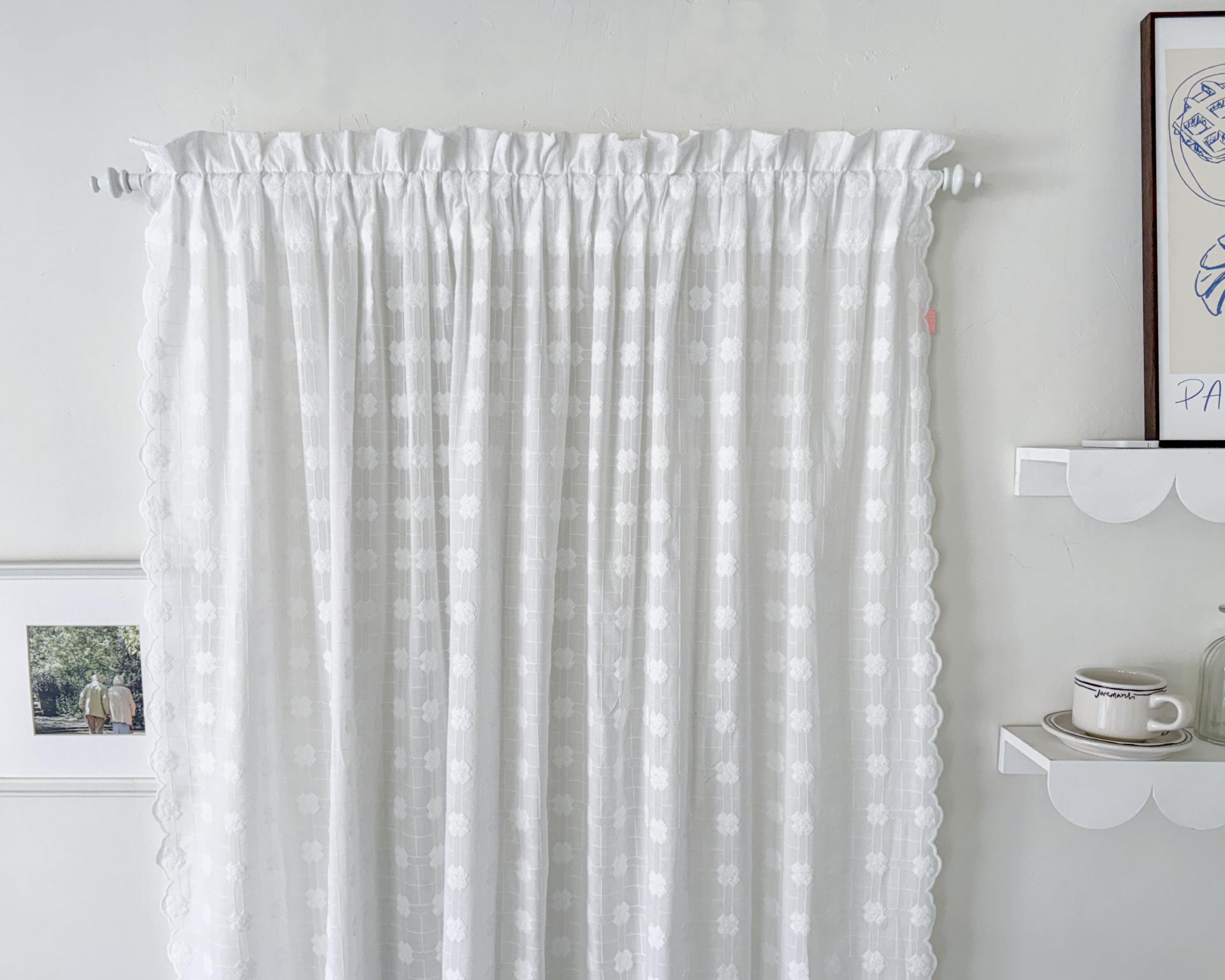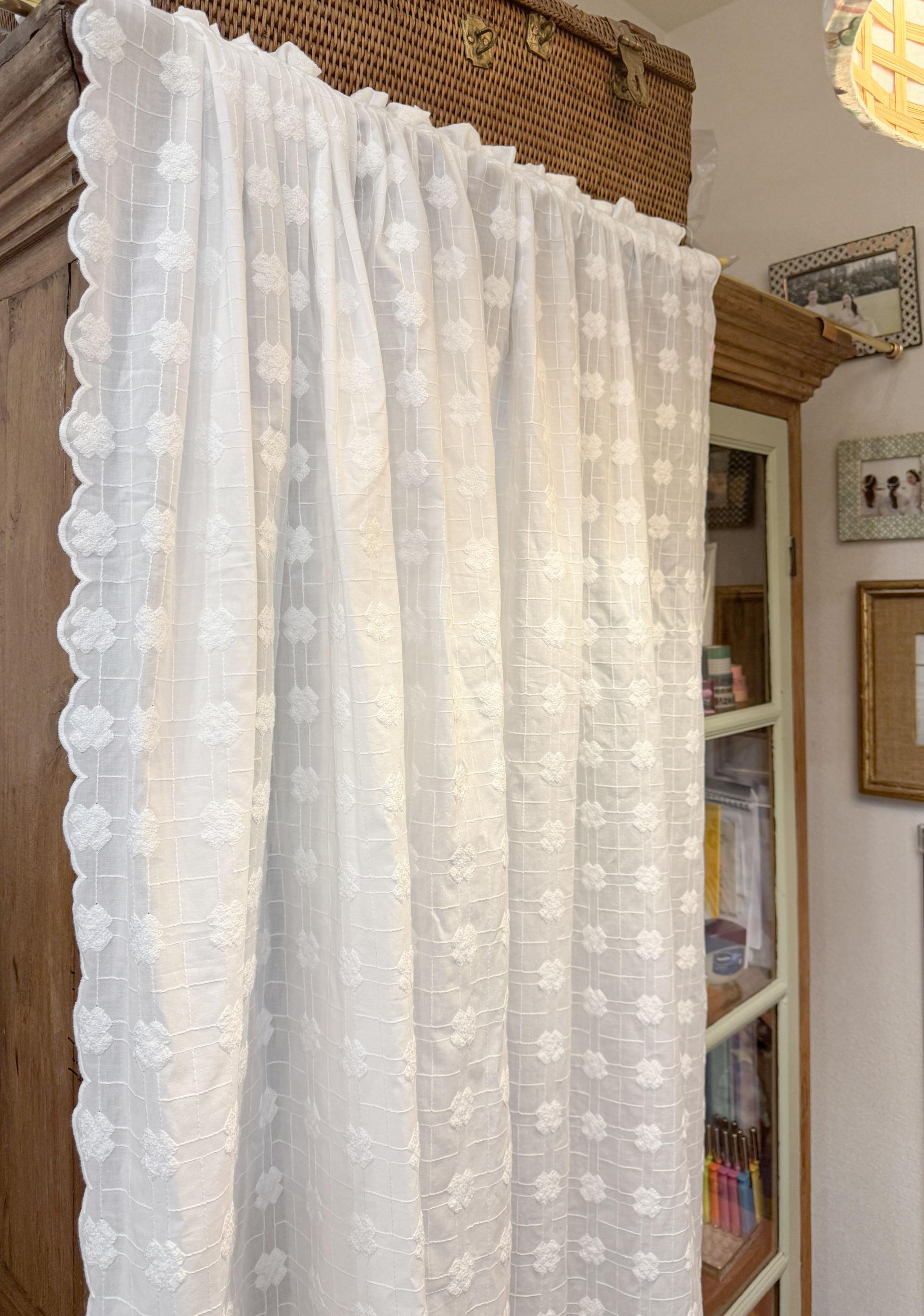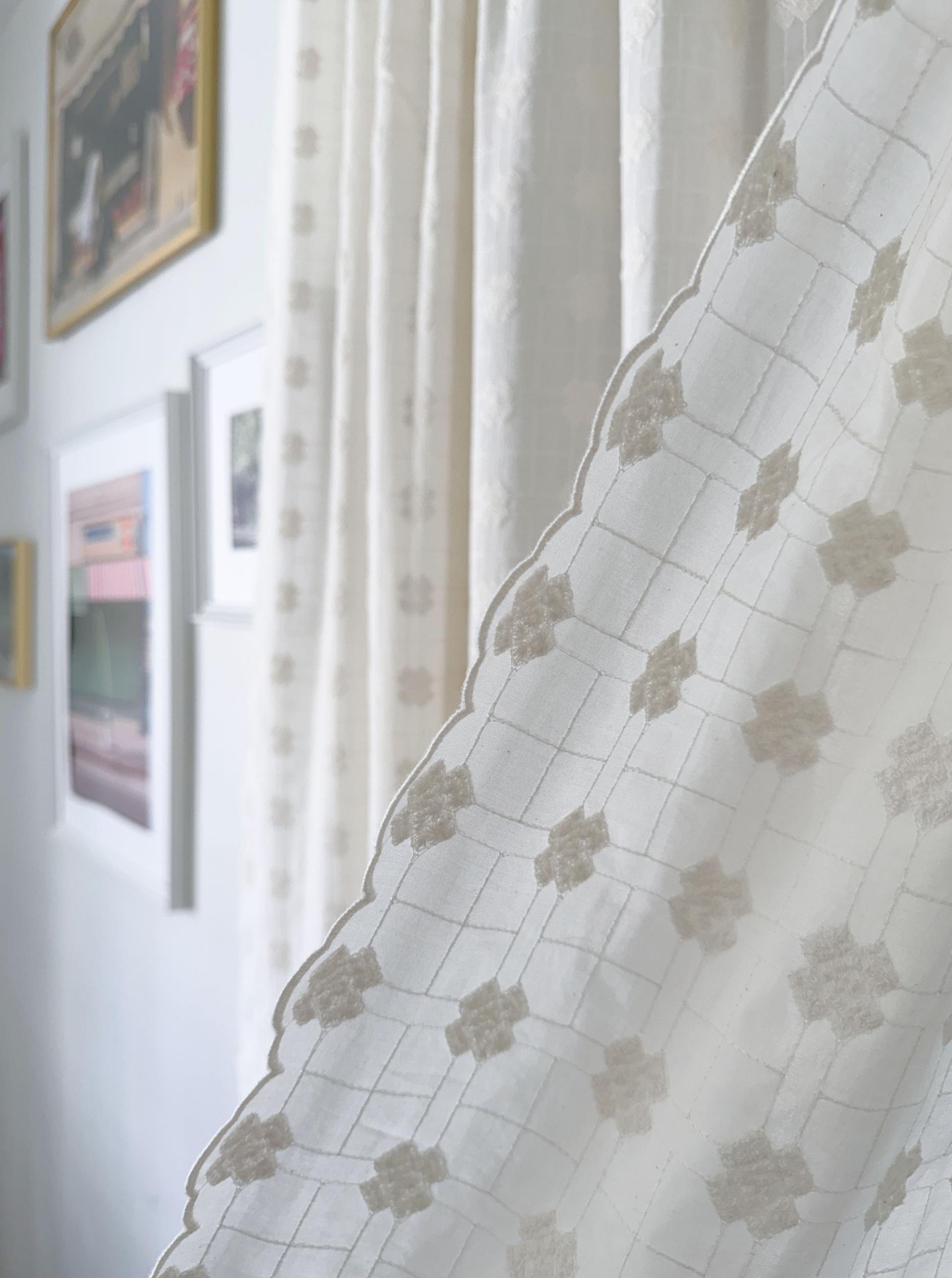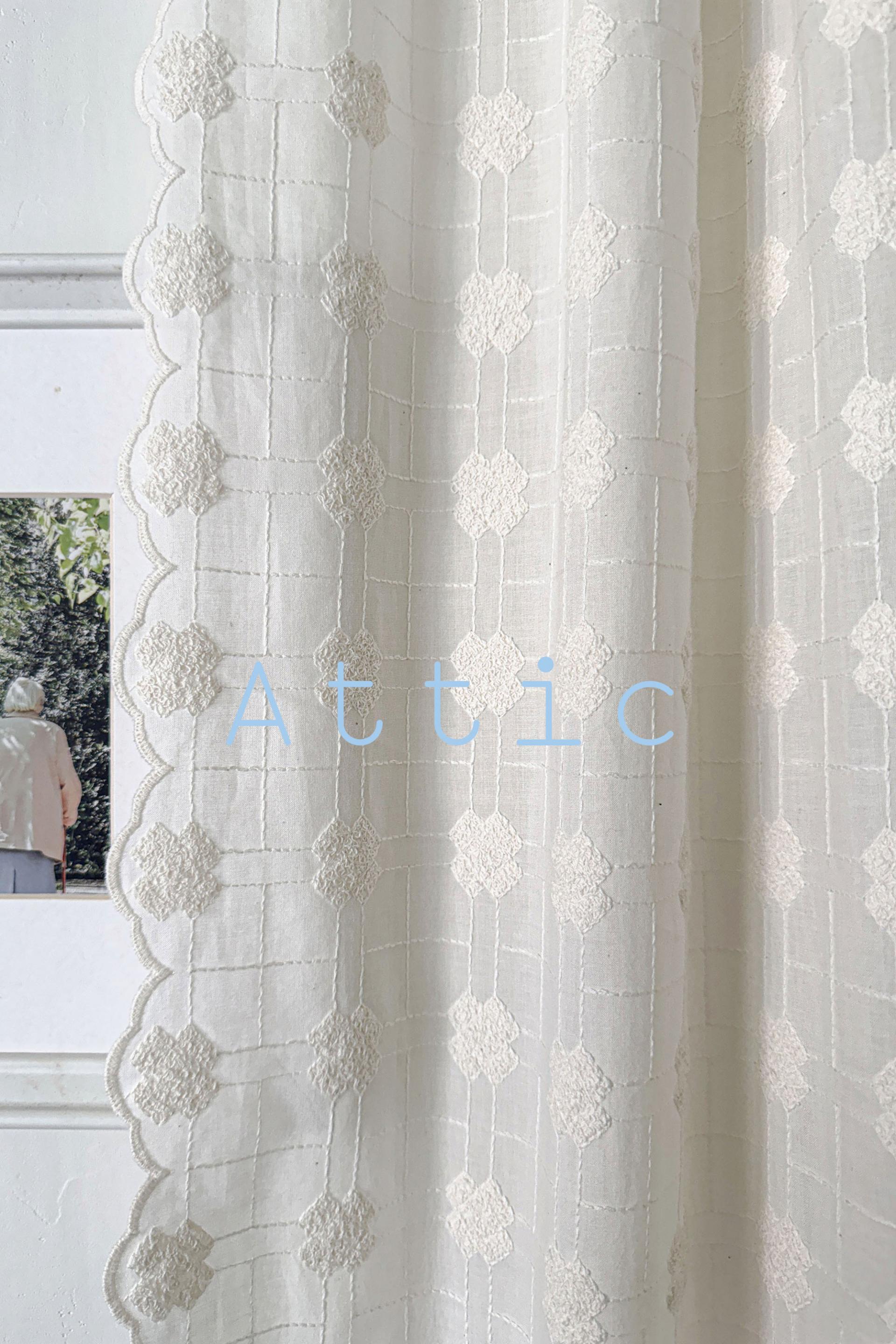 빈티지풍의 embroidery 자수가 수놓아진 애틱커튼이예요.