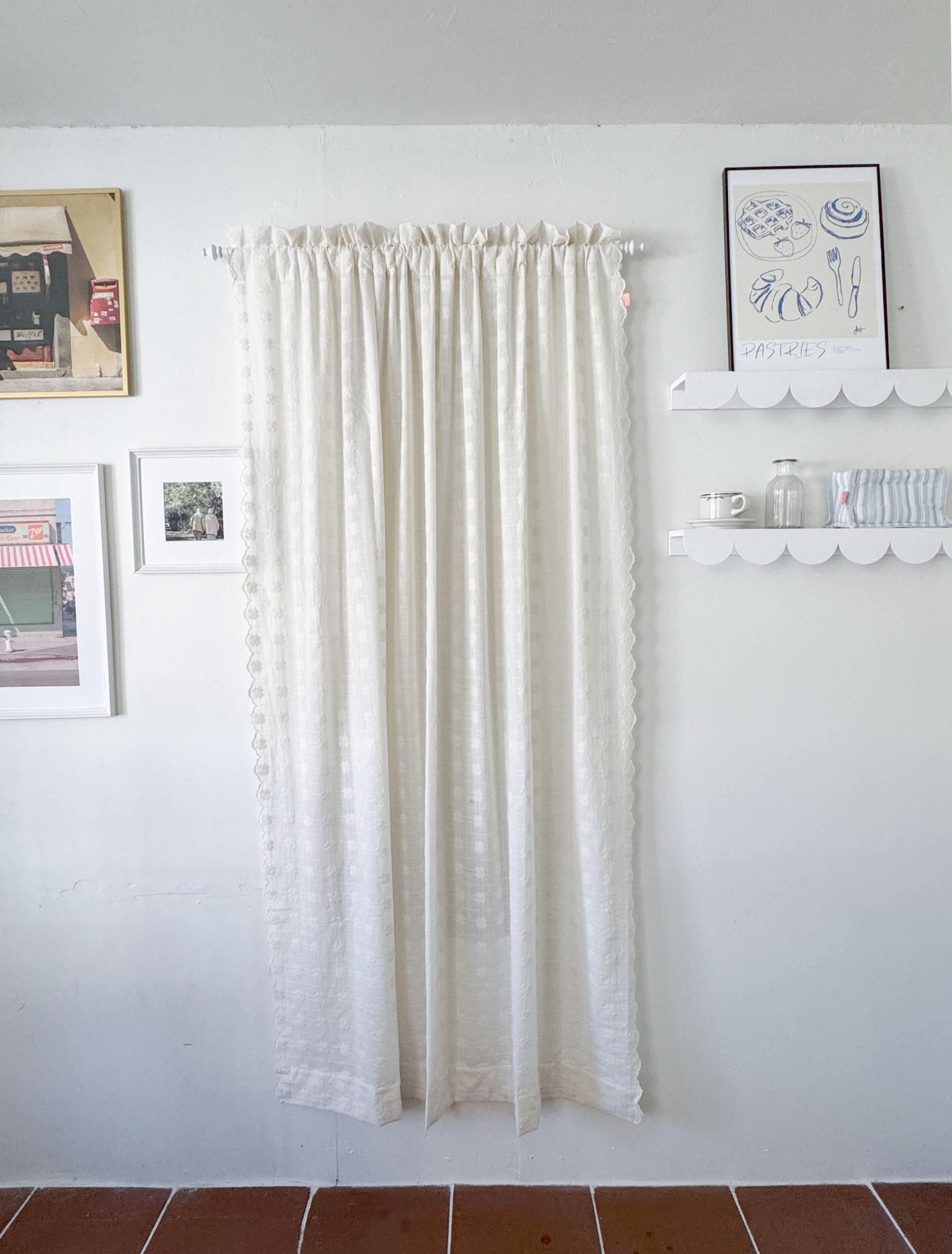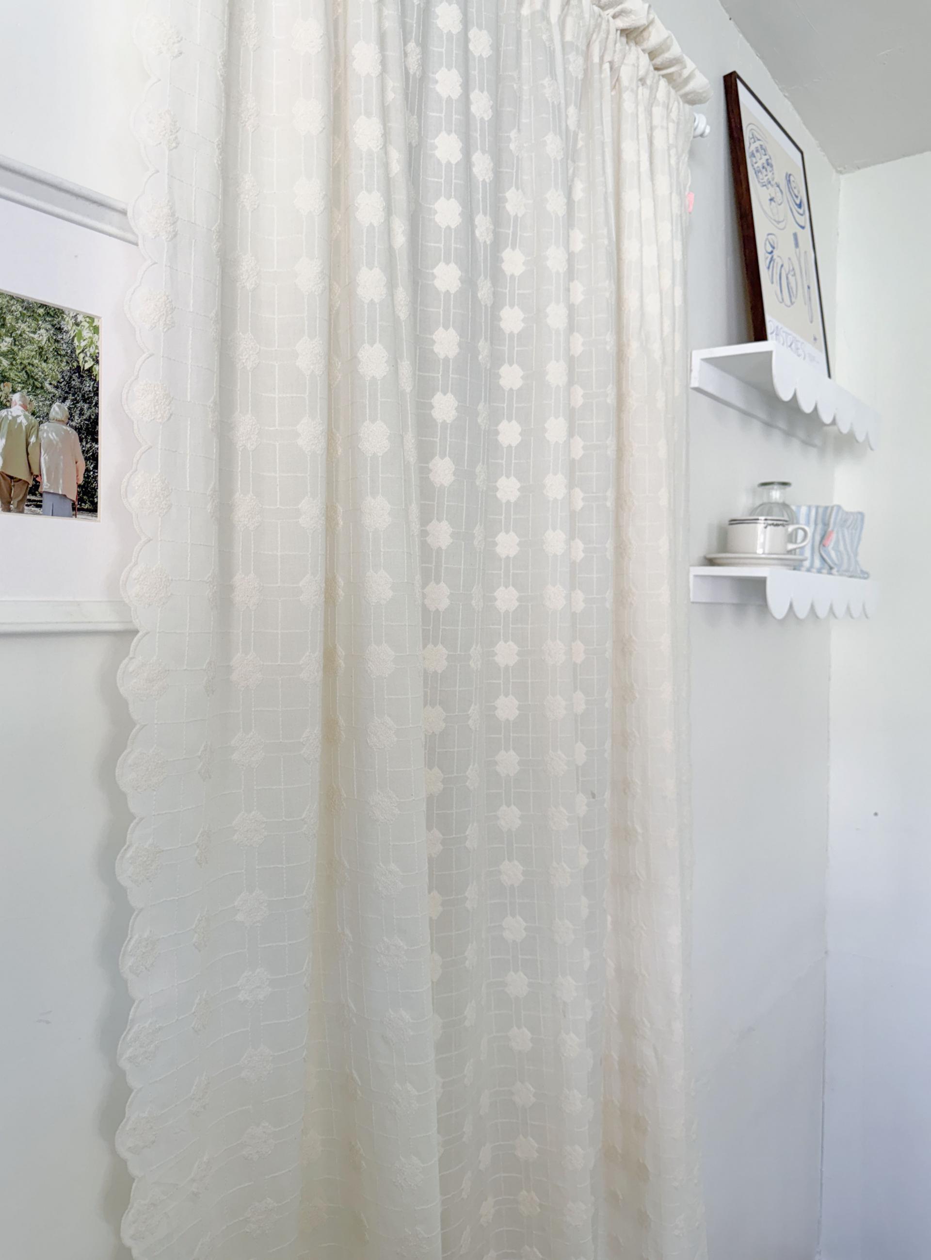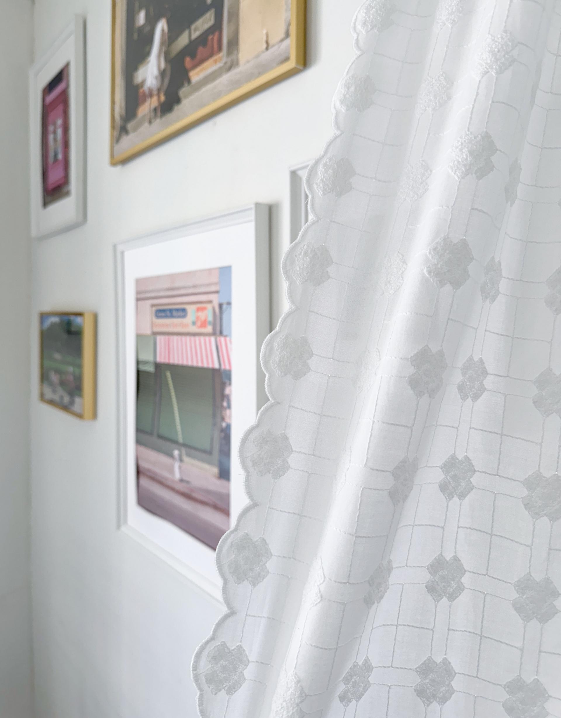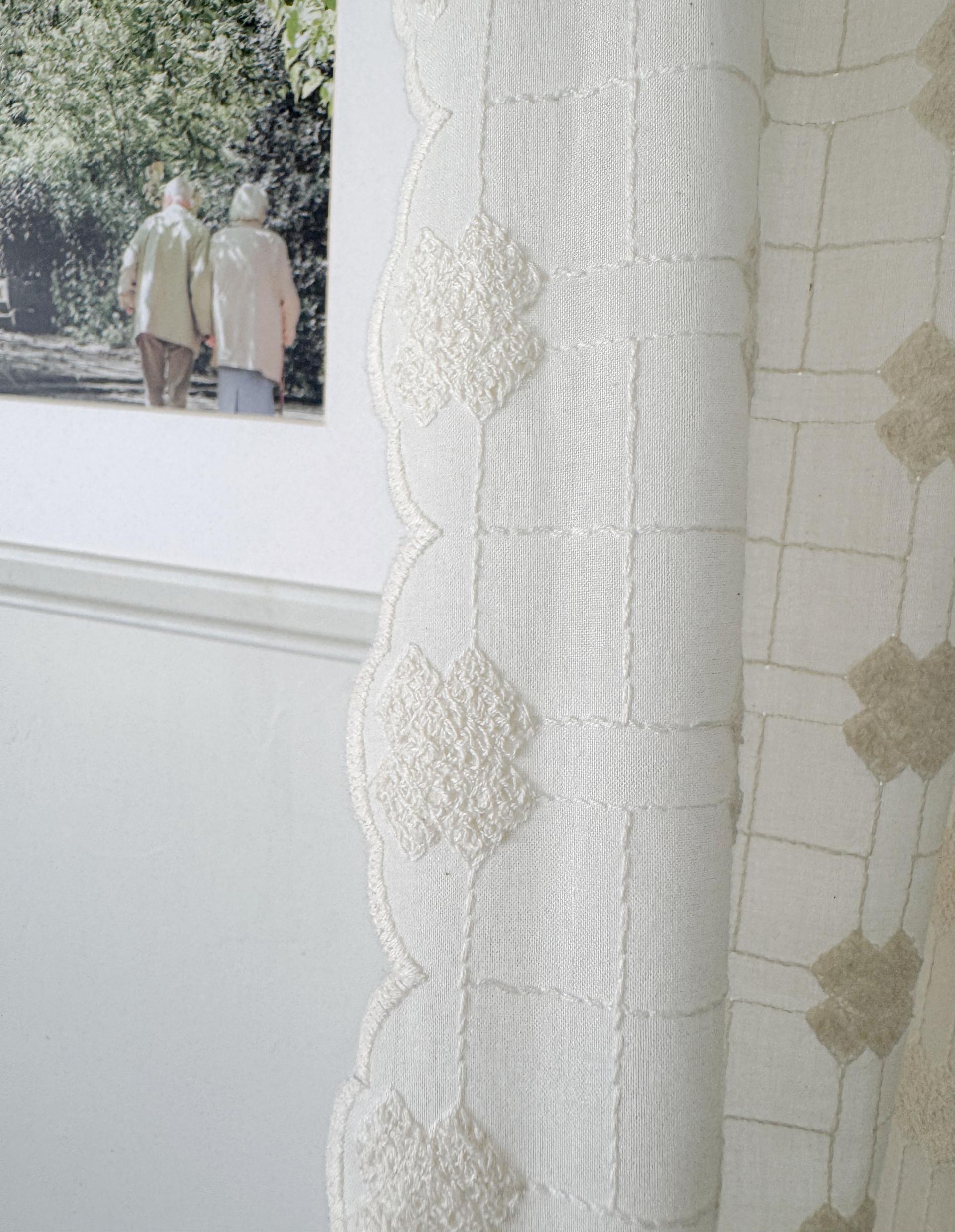 빈티지풍의 embroidery 자수가 수놓아진 애틱커튼이예요.