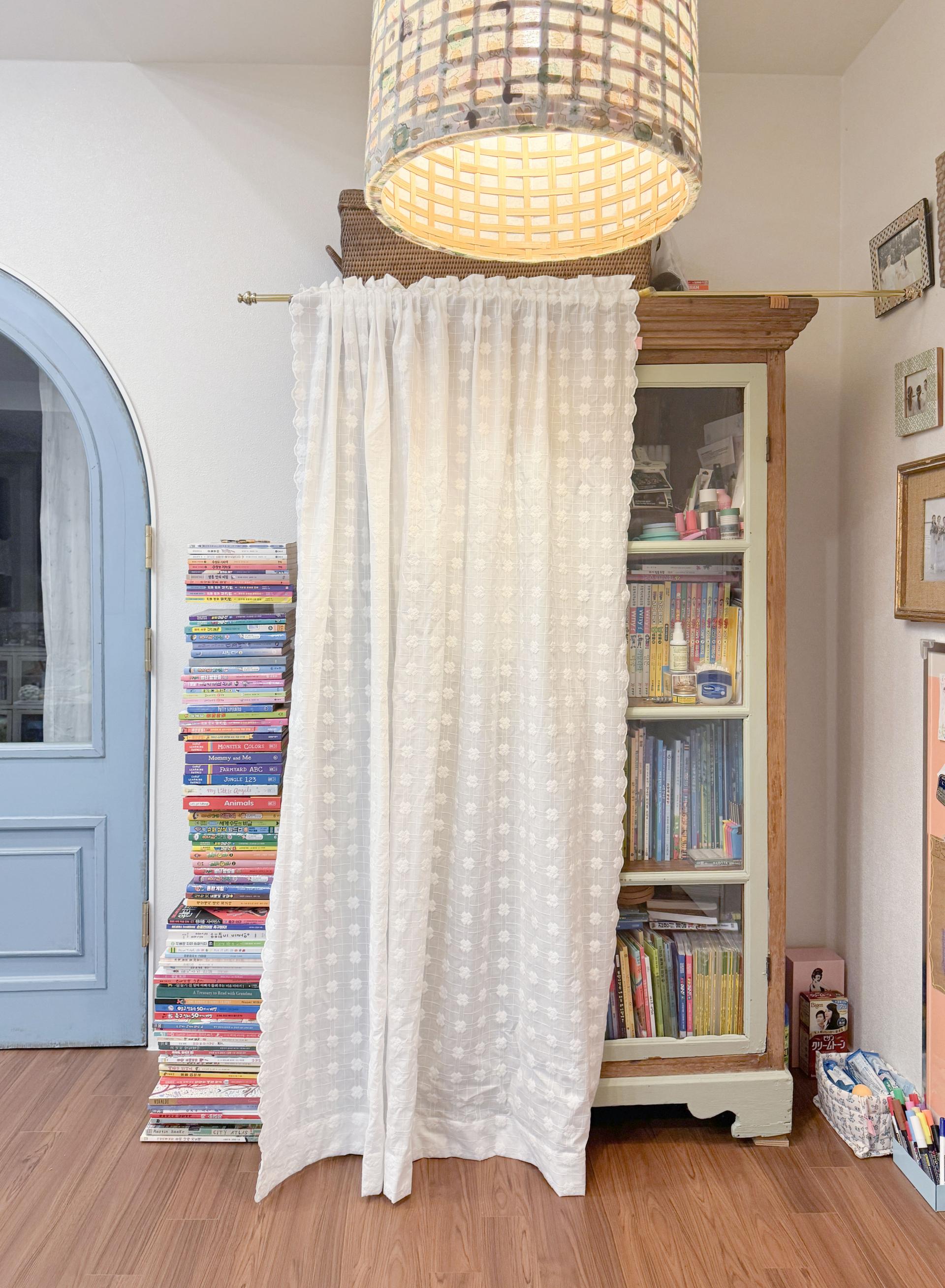 혹은 창문틀만 가리고자 할 경우엔 레일이나 커튼봉에서