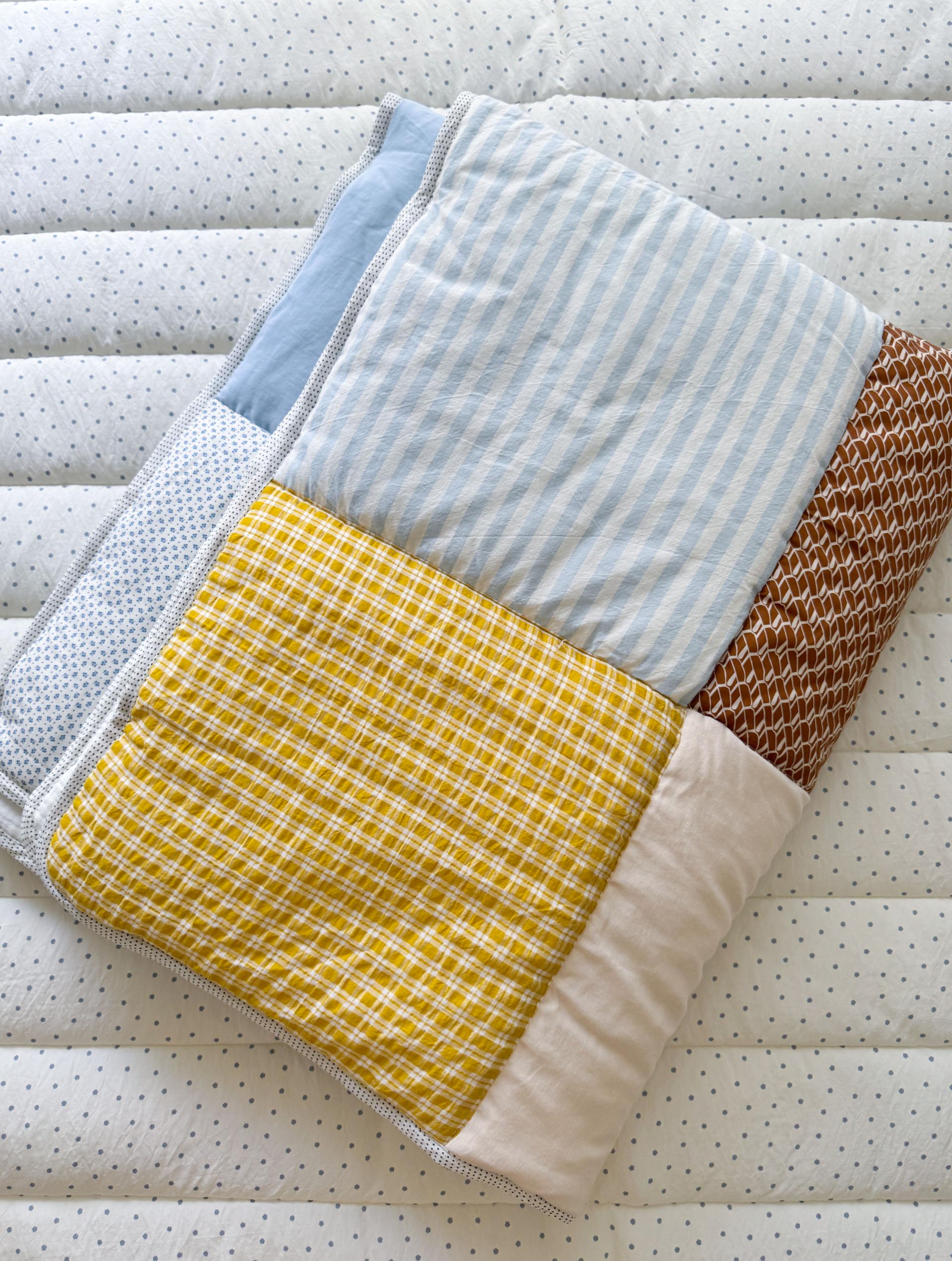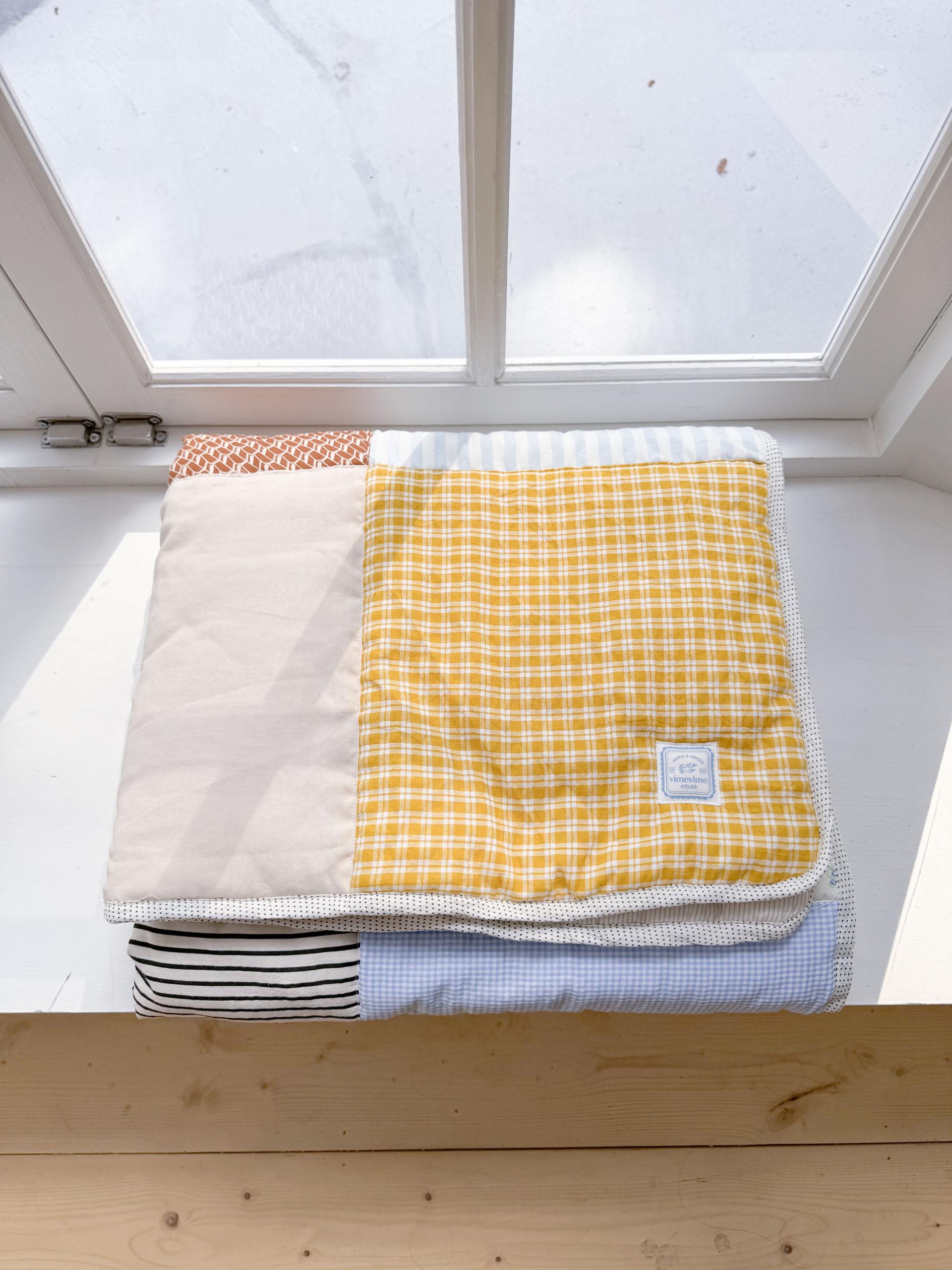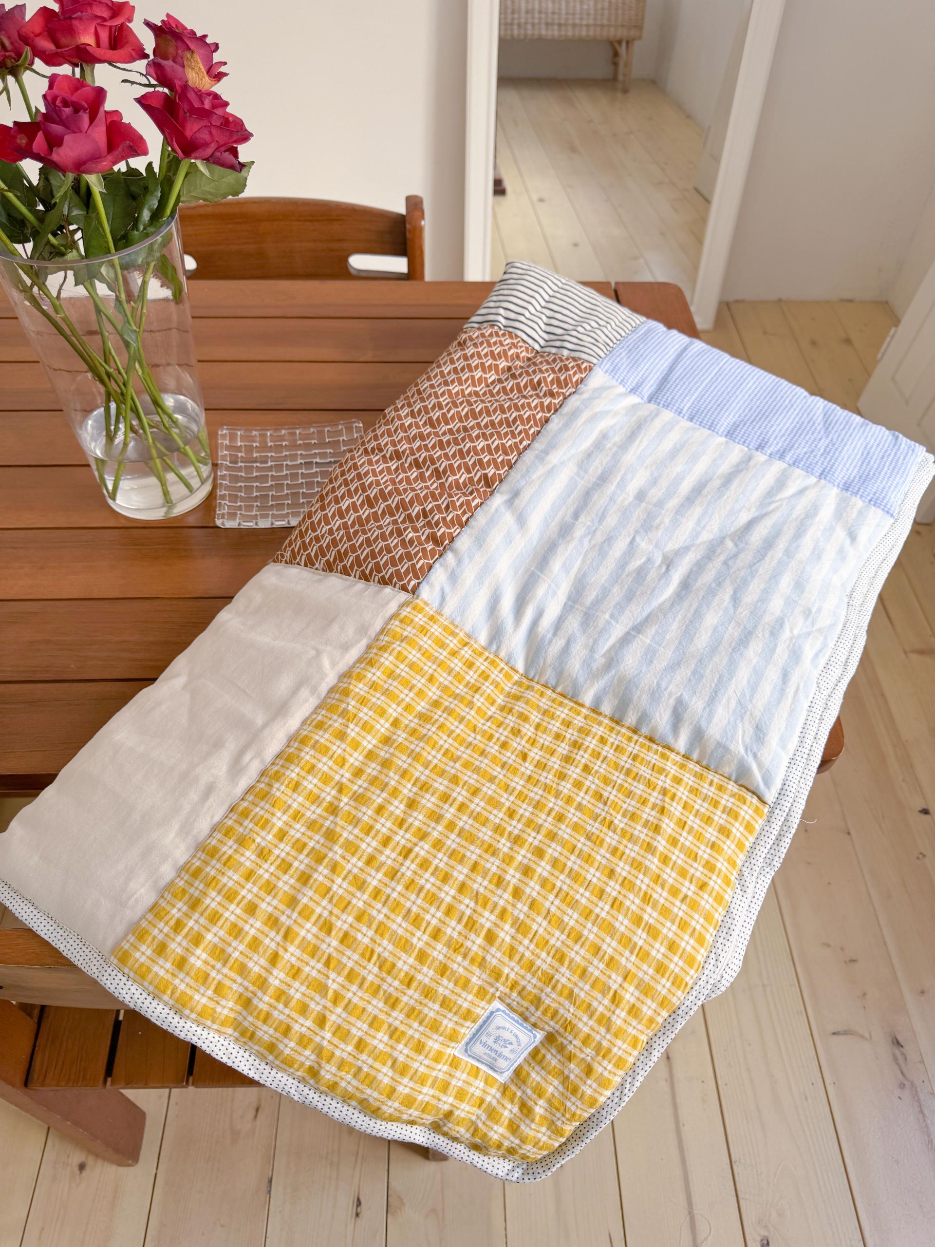 노란 체크원단이 오른쪽 아래로 오도록 하여,