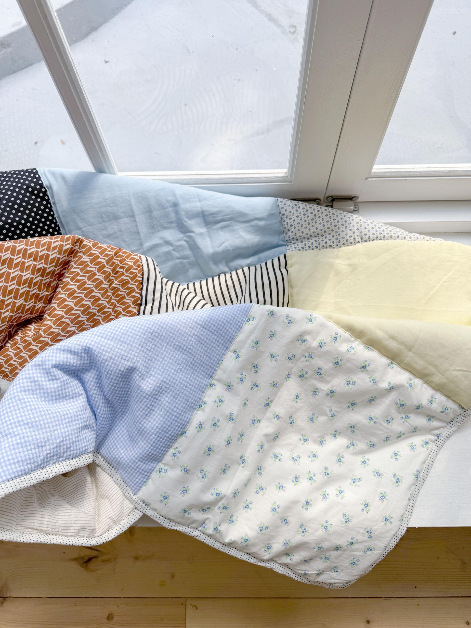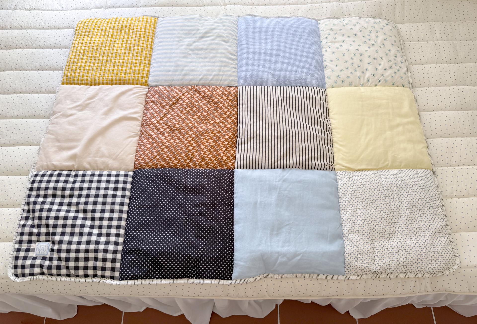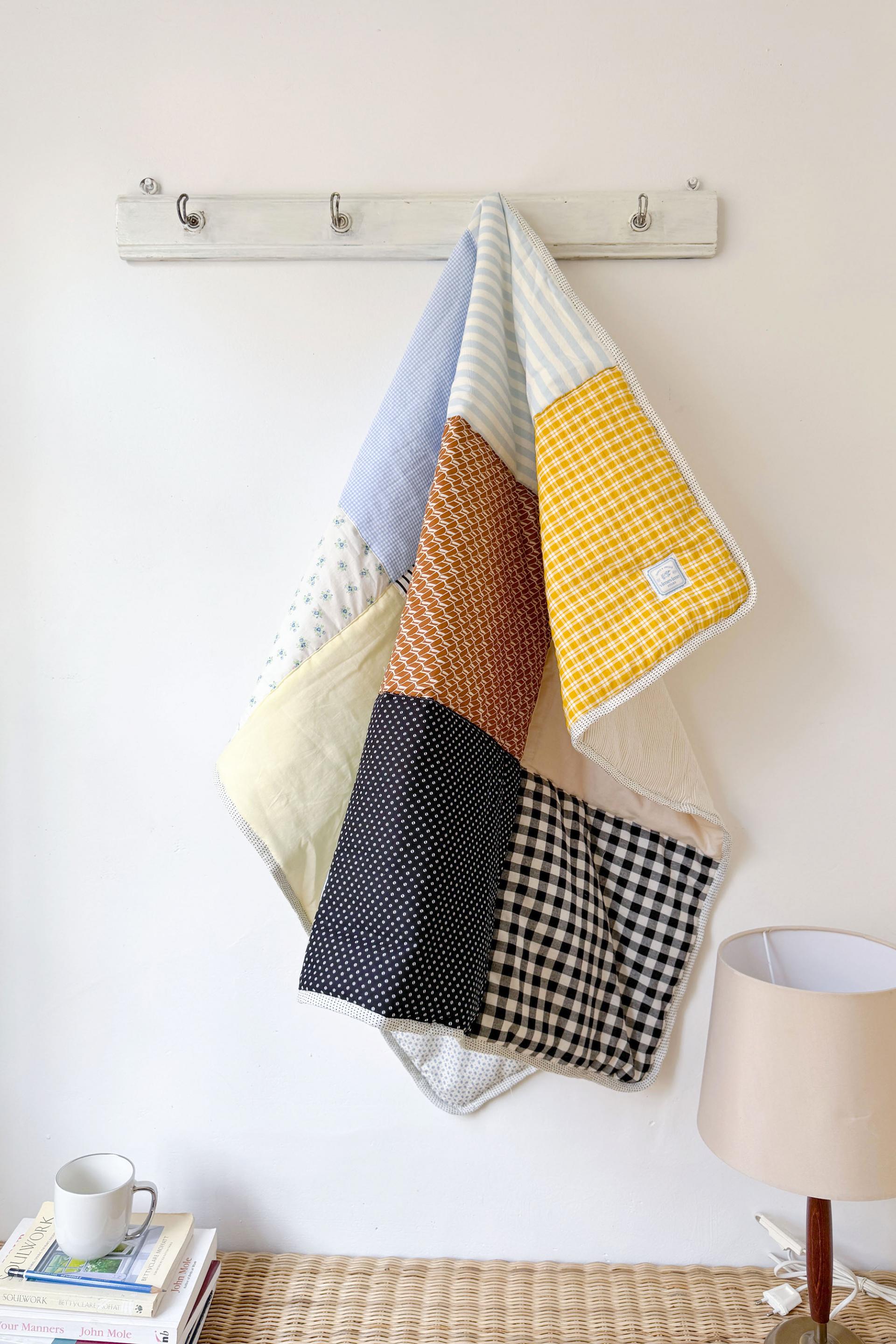 노란 체크원단이 오른쪽 아래로 오도록 하여,